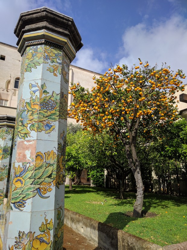 - Punto uno: il Monastero di Santa Chiara. Situato nel cuore di Spaccanapoli, séguito dell’omonima chiesa le cui pareti sono state vandalizzate (come tutto il tessuto urbano di Napoli, del resto). L’interno? Una meraviglia fatta di piastrelle in ceramica dipinta di colori accesi, con una delicata prevalenza del blu e di un giardino incantato con colonne poste in ordine armonioso.