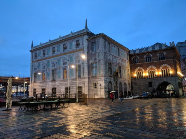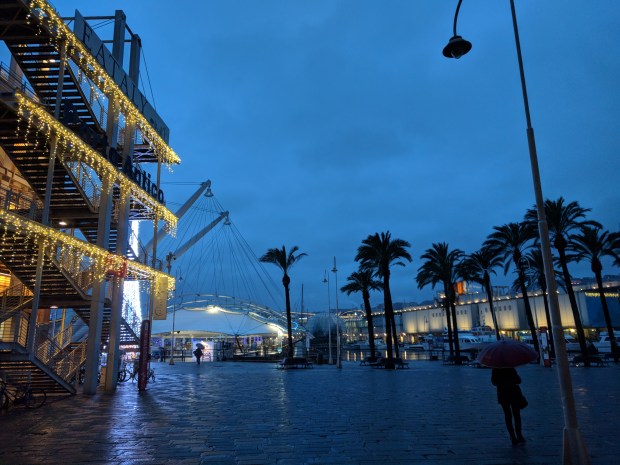 Tutt’intorno, una Genova un po’ bagnata dalla pioggia, che non ha arrestato lo spirito natalizio dei bancarellisti venuti in soccorso dei tanti turisti in cerca dei regali, tra una visita e l’altra alle bellezze di una città tutta da scoprire.