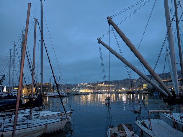 Non capita tutti i giorni di fare una crociera gratis, anche se la nave MSC Meraviglia non si muove dal porto di Genova. Non importa,  perché quattro ore bastano per imbarcarti, visitare quella piccola-grande città tutta addobbata a festa in vista del Natale e farti offrire un pranzo in compagnia di una simpatica coppia di emiliani e di un napoletano che vive a Vicenza per un amore finito, ma è già pronto a spostarsi per nuovi inizi.