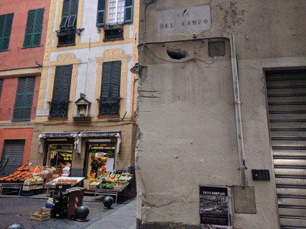 Il nostro giro, mio e dell’amica che mi ha permesso di partecipare alla presentazione della nave, comincia con un treno soppresso e un percorso di straforo che ci ha consentito di fare colazione con tutta calma alla Latteria Bonafede di via Lomellini, dove la panna è fatta in casa. Qui il cappuccino è in tazza grande, le brioches sono farcite con fantasia e i posti a sedere si contano sulle dita di una mano. Il sig. Lucio sa che i suoi clienti amano quell’ambiente raccolto nel cuore del centro storico della città ligure (per scoprire gli altri posti speciali dove far colazione a Genova, leggete questo interessante post di Trent’anni e Qualcosa). Per arrivarci, dalla Stazione di Piazza Principe, abbiamo attraversato una strada degna dei Quartieri Spagnoli di Napoli, popolata da etnie molto più vicine a quelle dei negozianti del Raval di Barcellona che di una città d’arte italiana.