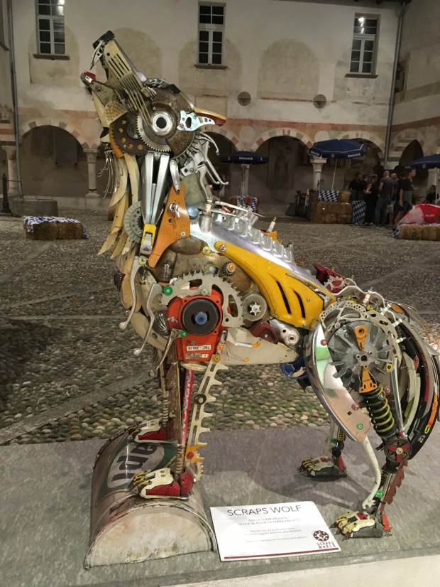Devo dire che anche dal punto di vista culturale questo luogo ha le sue particolarità. Si direbbe che sia difficile trovare un lato artistico da parte di chi ha sempre vissuto qui, invece, pedalando per le vie del centro, io ho scoperto luoghi e persone speciali. Sto parlando di Marcello, un amico fotografo che lavora in una bottega semplice e particolare allo stesso tempo; oppure di un artista locale, che esegue sculture con pezzi meccanici di moto, auto, biciclette e persino elettrodomestici. I suoi lavori hanno le sembianze di lupi, fenici e chi più ne ha più ne metta, arricchite sempre da descrizioni peculiari. In particolare ne ricordo una: “Dattilo, lo spirito della macchina da scrivere. Dattilo è il condottiero delle vecchie e gloriose macchine da scrivere. Un tempo troneggiavano gloriose sulle scrivanie, poi soppiantate da computer e stampanti e dimenticate in solai e cantine. Sono un esercito in metamorfosi, si stanno organizzando per tornare protagoniste nella letteratura.”