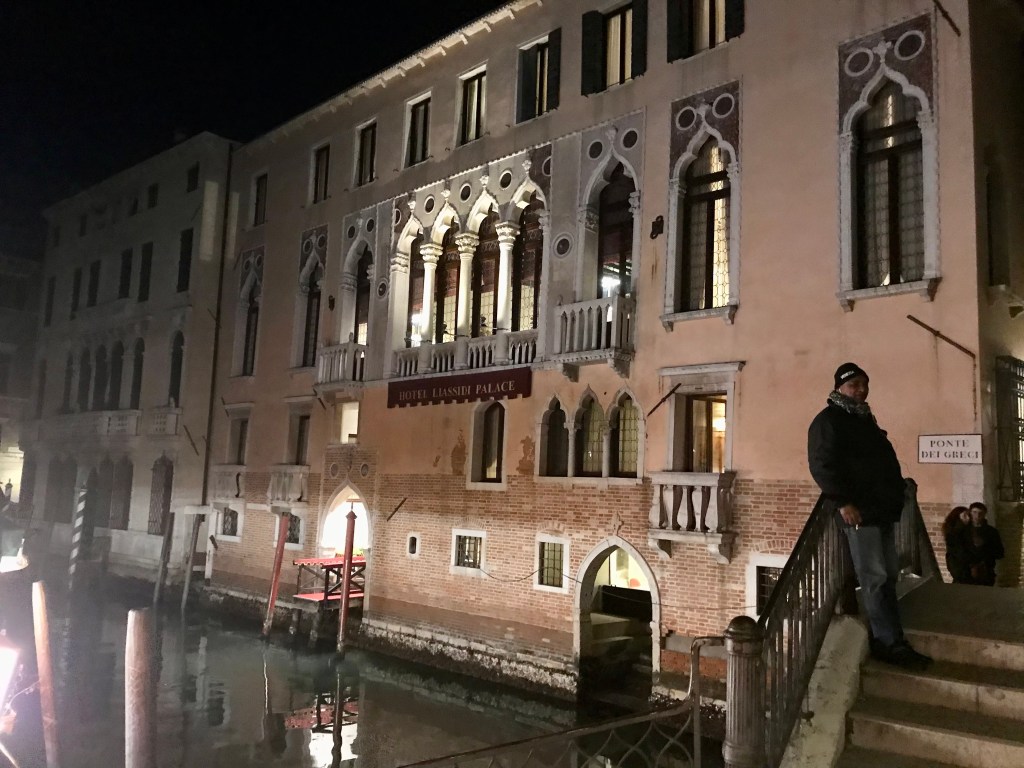 Abbiamo preso una barca da Piazzale Roma alla fermata Zattere. Abbiamo superato molti edifici e ponti lungo la strada. C’erano molti edifici in stile antico ed eleganti, di colori calmi e sereni con finestre ad arco e con balconi. Siamo passati sotto il Ponte di Rialto. I suoi archi eleganti erano esattamente come le immagini viste nei libri. Il giro in barca è stato magico, come entrare in una fiaba. Il movimento della barca, le altre persone sulla barca e le loro conversazioni mi hanno cullata come in un sogno pacifico. La gioia sul viso di mia figlia è tutt’oggi evidente nelle nostre foto. È interessante riguardare le foto perché il nostro giro in barca è iniziato alla luce del sole, ma quando siamo arrivate all’hotel il sole era già tramontato e la nostra prima vista del Liassidi Palazzo Hotel è stata al buio.